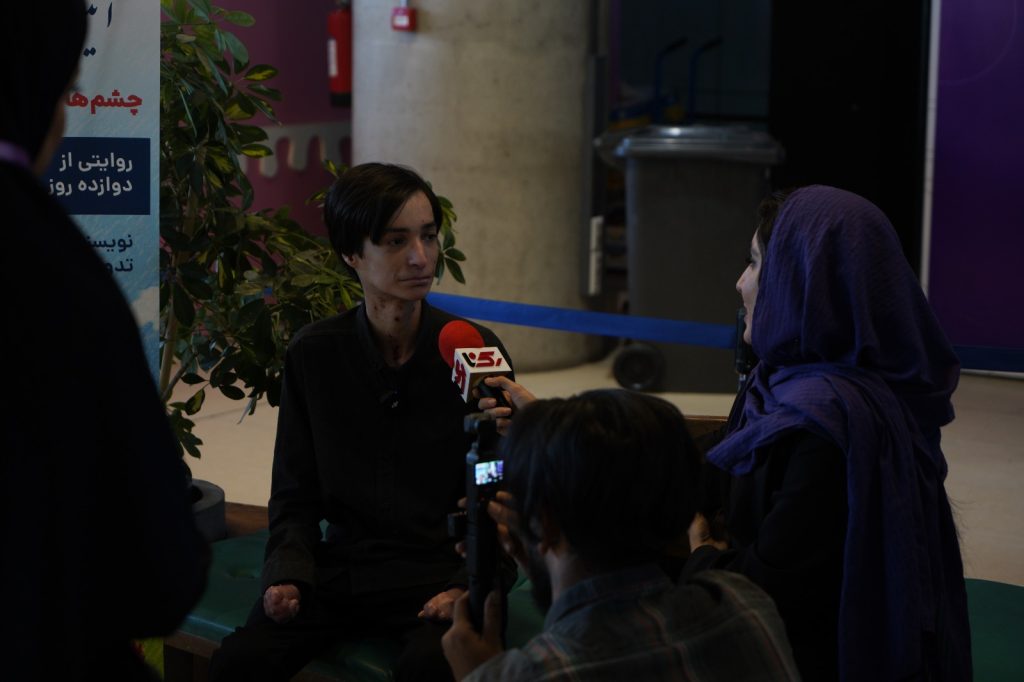 پس از پایان سخنرانیها، چراغهای سالن خاموش شد و مستند «چشمهای نگران، زخمهای منتظر» برای نخستین بار بر پرده سالن شماره ۷ باغ کتاب به نمایش درآمد. این مستند ۵۵ دقیقهای، با تصاویری واقعی و مصاحبههایی از بیماران، خانوادهها، پزشکان و پرسنل خانه ایبی، روایتی مستند و انسانی از مقاومت در برابر بحران را ارائه میداد.