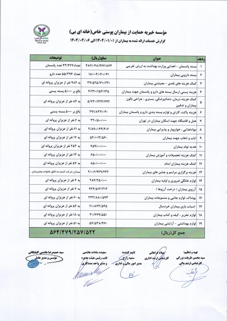 خانه ای بی ایران تنها نهاد رسمی و ملی حمایت از بیماران پروانه ای در سراسر کشور است؛ که بیش از ۱۳۰۰ مددجوی مظلوم پروانه ای را تحت پوشش خود داردکه خدماتی از قبیل ارسال پانسمان ، بسته دارویی، پک عیدانه ، واریزی معیشت ، واریزی معیشت ایتام پروانه ای ، واریزی هدیه تولد برای پروانه های عزیز ، کمک هزینه عمل جراحی بالون مری ، جراحی دست ، دندانپزشکی و … با حمایت نیکوکاران عزیز به صورت یکسان و سراسری در کشور به مددجویان دردمند پروانه ای ارائه می کند.