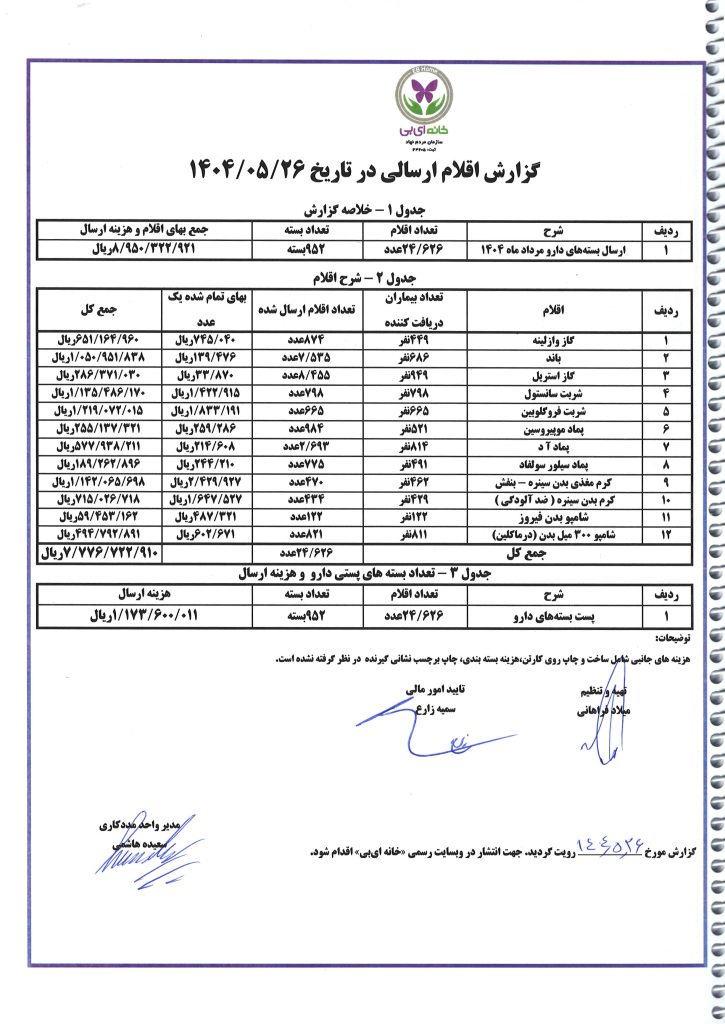 در خانه ای بی ، نیاز های مددجویان توسط واحد مددکاری بررسی شده و بسته های دارویی برای تمام پروانه های عزیزمان در سراسر کشور به شرح ذیل ارسال می شود :